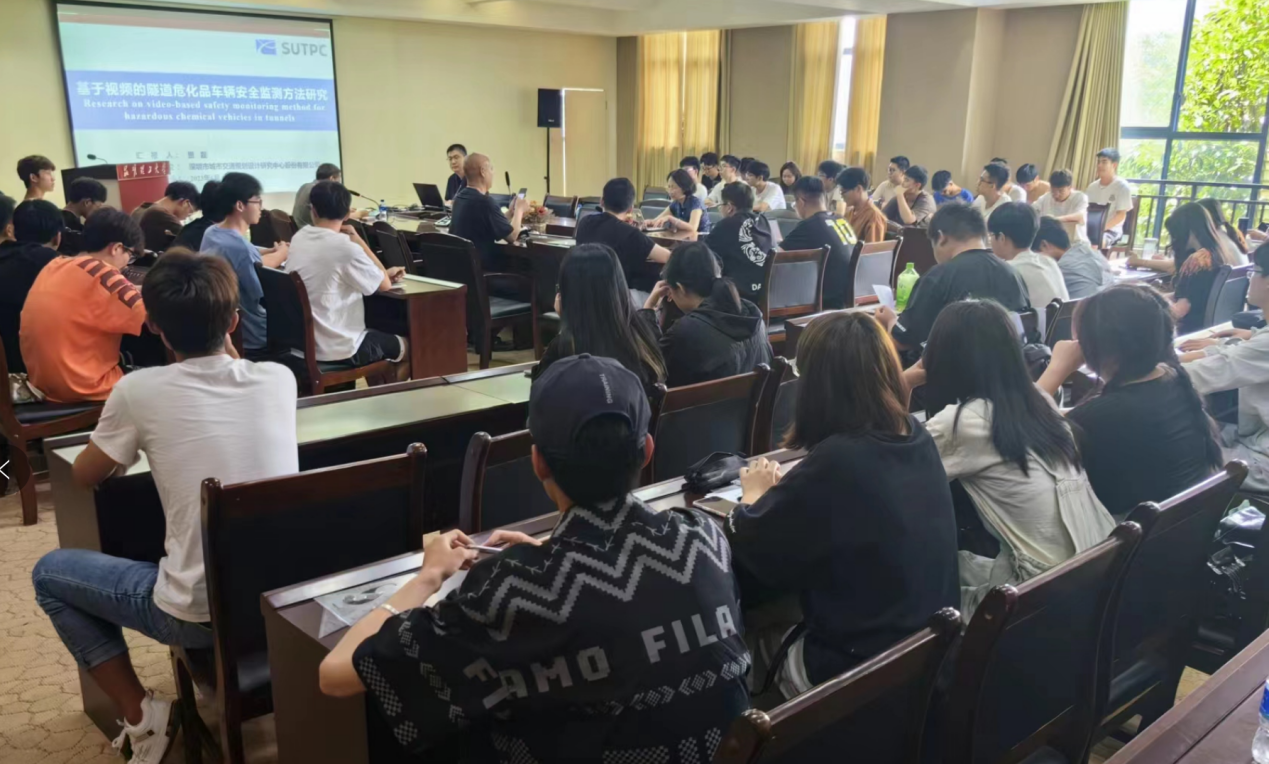 讲座中,贾磊博士展示了集监测视频采集和处理、交通参数检测、交通事件分析、交通信息管理功能于一体的隧道综合管理平台。针对隧道环境中危化品车辆监控存在缺乏车型分类标准、跨摄像机跟踪难度大、车辆动态风险检测难等挑战,基于视频目标检测、目标跟踪与随机森林决策树等方法,提出了基于轻量化骨干网络的危化品车辆车型检测方法,融合隧道时空信息的危化品车辆重识别技术、基于监控视频的隧道交通冲突预测方法,并开发了基于视频的隧道车辆安全监测系统。
