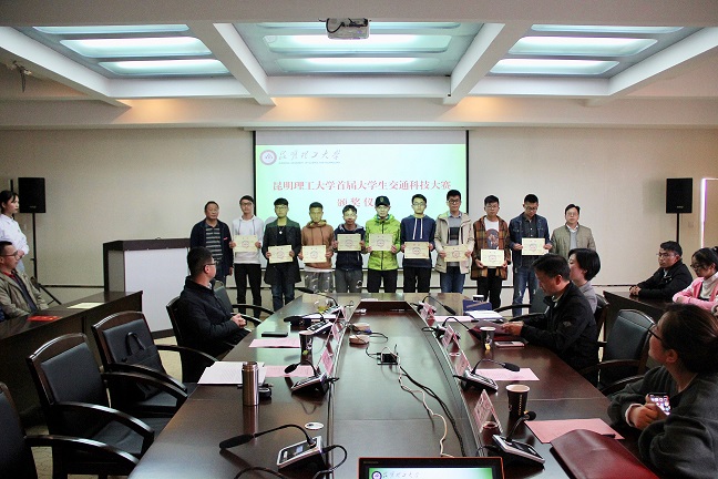 首届大学生交通科技大赛颁奖仪式在交通楼A308报告厅举行。教务处副处长李闻天、交通学院院长雷基林、党委副书记张强出席,各科室主要负责人、师生代表共60余人参加了本次颁奖仪式。