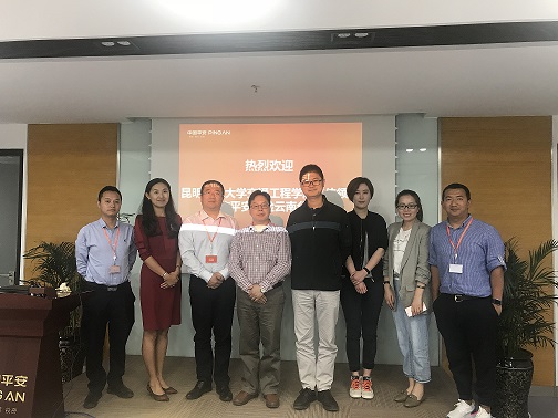 雷基林、党委副书记张强,学工办主任王懿娜,团委就业负责人晁洁,中国平安财产保险股份有限公司云南分公司副总经理汪波,人力资源部经理陆洮,客服理赔部经理黎强参加续签校企合作协议活动。