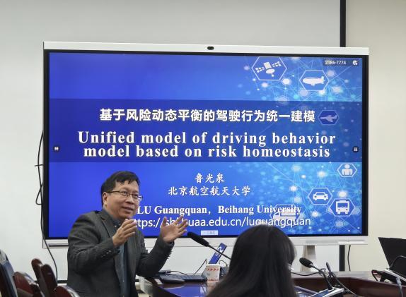 2024年11月14日,北京航空航天大学长聘教授、博士生导师、国家级科技创新人才鲁光泉教授在交通楼A座310报告厅为学院师生带来了一场题为《基于风险动态平衡的驾驶行为统一建模》的学术讲座。本次讲座旨在提高同学们对驾驶行为建模及其在道路交通安全领域应用的理解,为大家带来丰富的知识和深刻的学术启发。