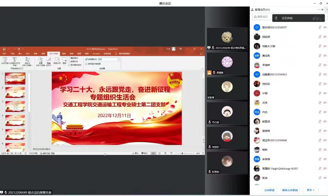 团委组织共40多个本科生、研究生团支部,在2022年11月至12月于线上认真开展“学习二十大、永远跟党走、奋进新征程”专题组织生活会,全院全体团员共同参与,学院团委老师、班主任和辅导员耐心指导,确保组织生活会走深走实。