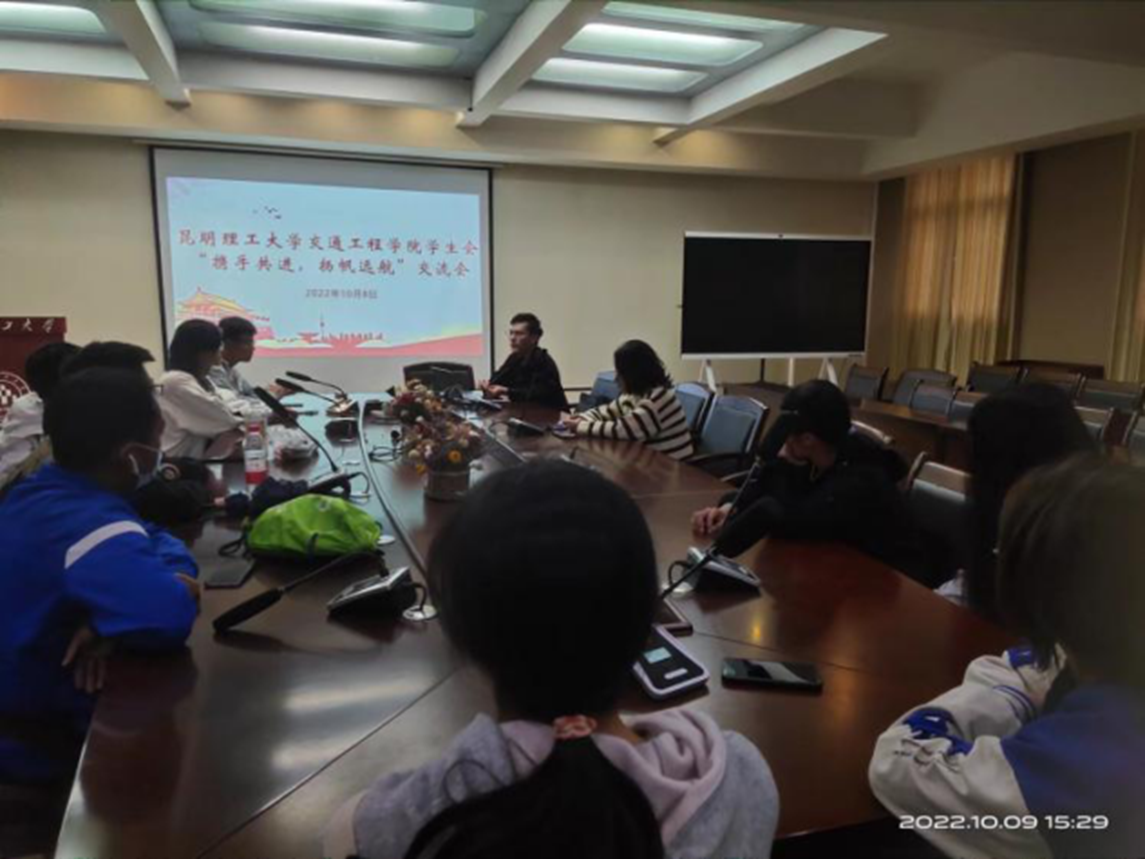 学生会于2022年10月8日15点在交通楼A308报告厅举办“携手共进、扬帆远航”交流会。