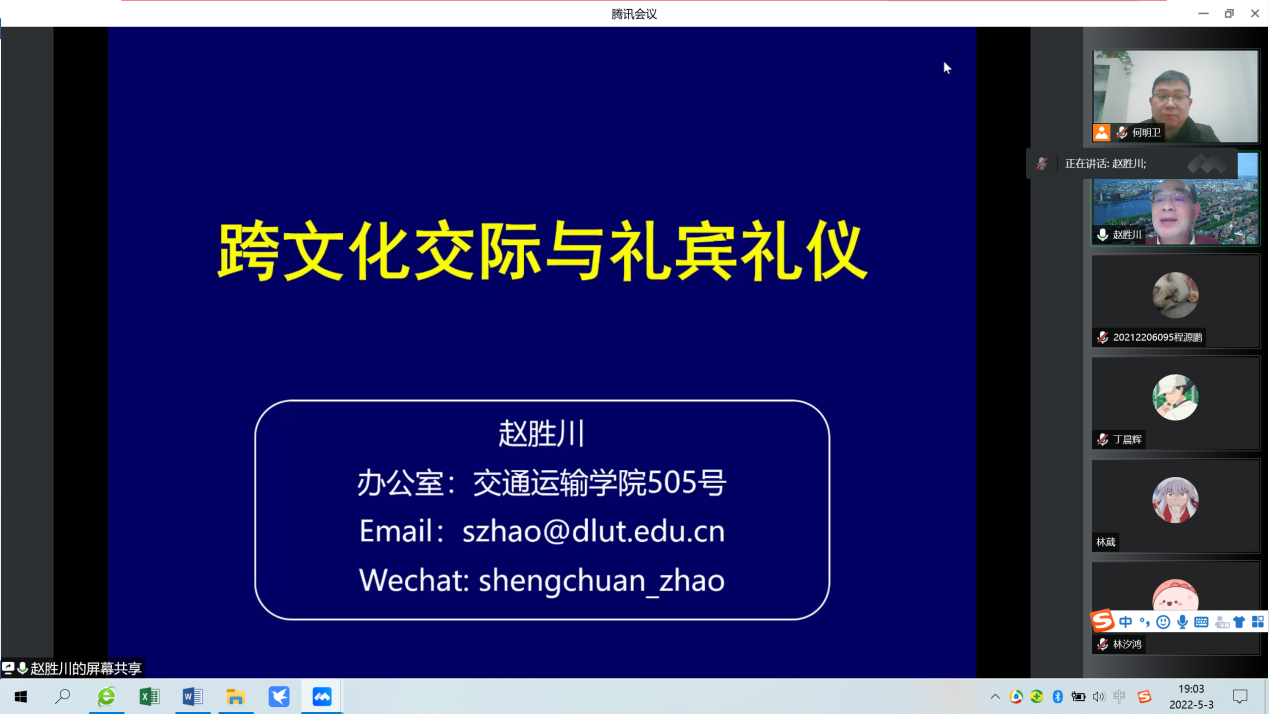 5月4日19点,由院团委主办、院研究生会承办了“跨文化交际与礼宾礼仪”专题讲座,由赵胜川老师主讲,院团委书记、本科生、研究生共计90余人参加。