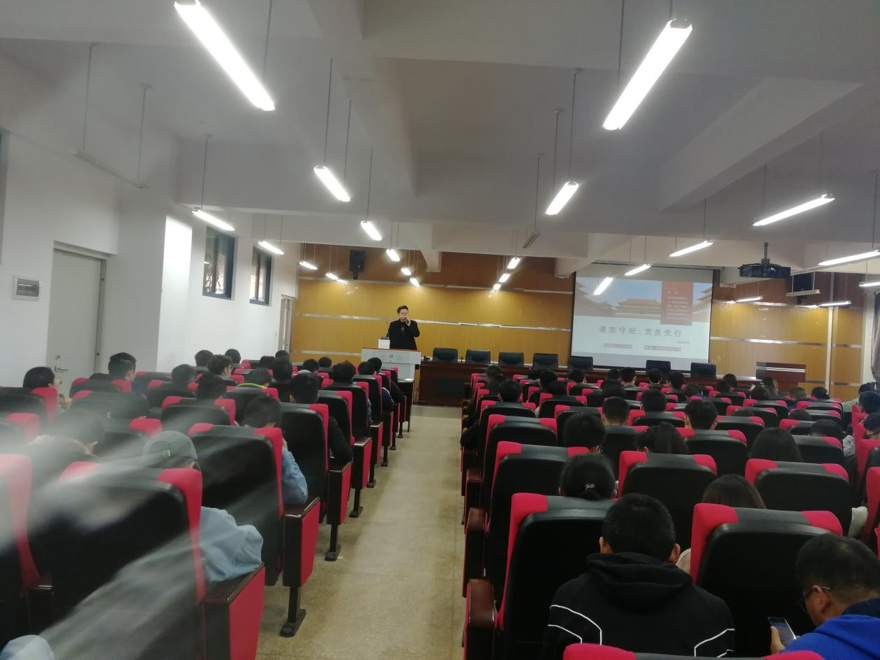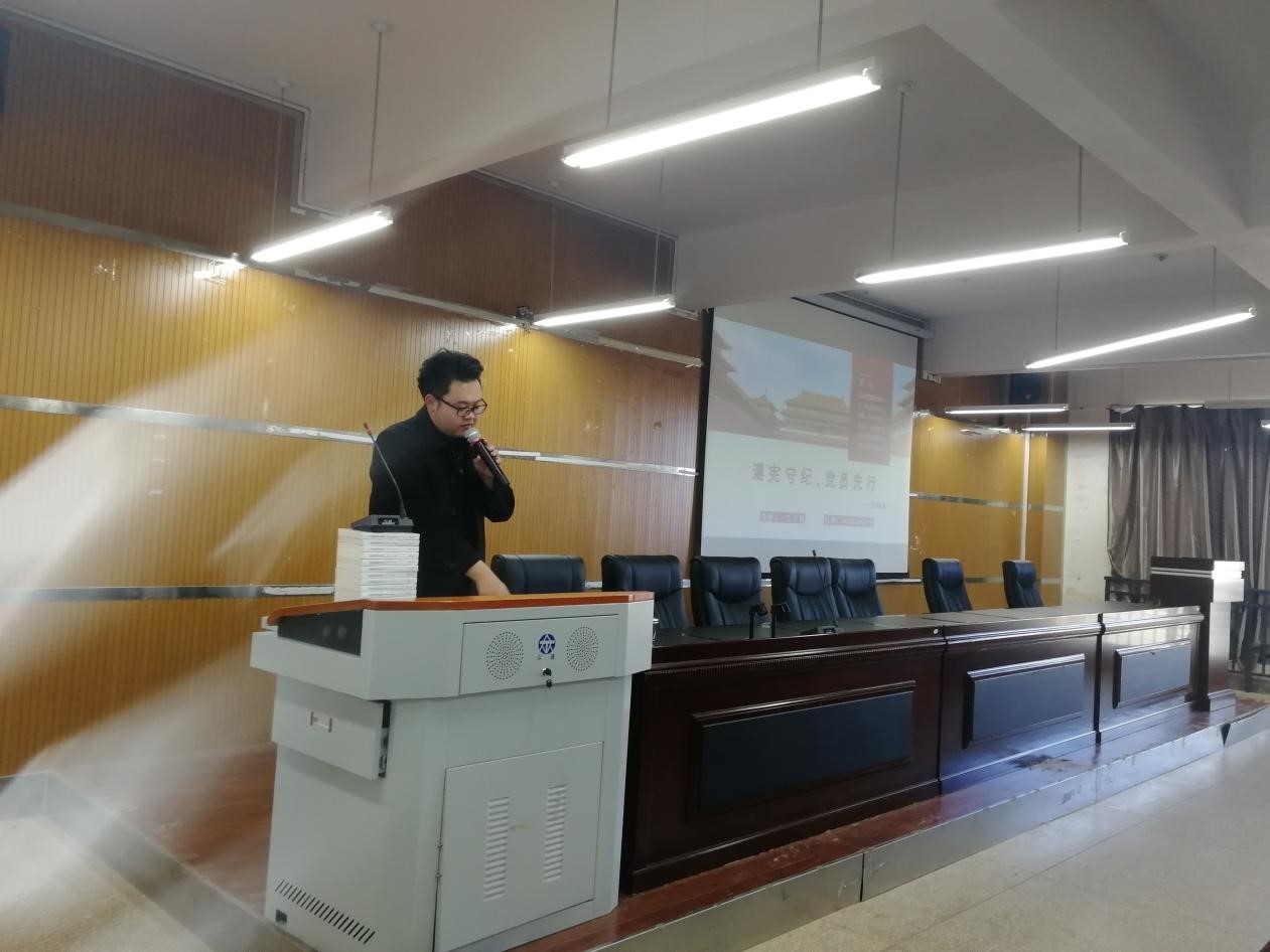 寸议鹏老师主讲,从宪法是什么,大学生党员如何遵守宪法,党的纪律,大学生党员的义务四个个方面进行讲解。