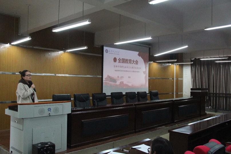 首先晁洁同志向我们介绍了会议的背景,然后是给讲解了会议的主要内容及精神。会议提出了教育的定位--国之大计,党之大计。对习近平总书记强调的“培养什么人”、“怎样培养人”、“为谁培养人”的解答以及“九个坚持”、六处“下功夫”的详细解释。习近平总书记还指出:办好教育事业,家庭、学校、政府、社会都有责任。加强党对教育工作的全面领导,是办好教育的根本保证。最后学习了习近平总书记谈教育发展的金句。