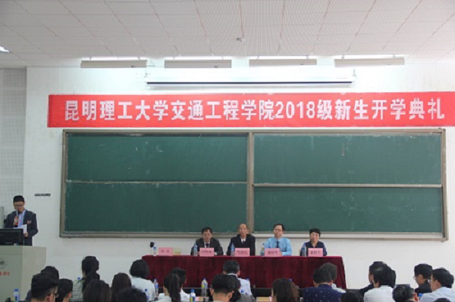 呈贡校区中心区100教室隆重举行。出席此次开学典礼的有交通学院党政领导、学位分委员会委员、各系主系主任、各科室负责人、2018级新生班主任、全体辅导员、2018级新生。