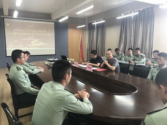 马旭东书记代表学院对即将毕业的2018届全体毕业国防生党员表示祝贺,并希望大家走入军队以后要更加严格要求自己,提高修养,锤炼党性,发挥党员的先锋模范作用,做一名合格的国防生党员。同时,马书记强调,无论今后走到哪,都希望各位国防生党员铭记并践行“明德任责,致知力行”的校训,发扬“根植红土,情系有色,坚忍不拔,赤诚报国”的昆工精神,真诚做人,认真做事,始终怀揣着一颗赤子之心,不忘初心,不懈奋斗。