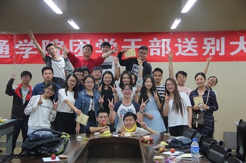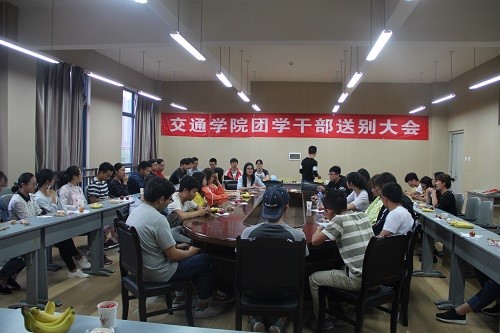 于交通楼B座403举行了团学干部送别大会。出席此次活动的有吴历勇老师和李春梅老师,以及2013级、2014级、2015级的交通院团委学生会干部。