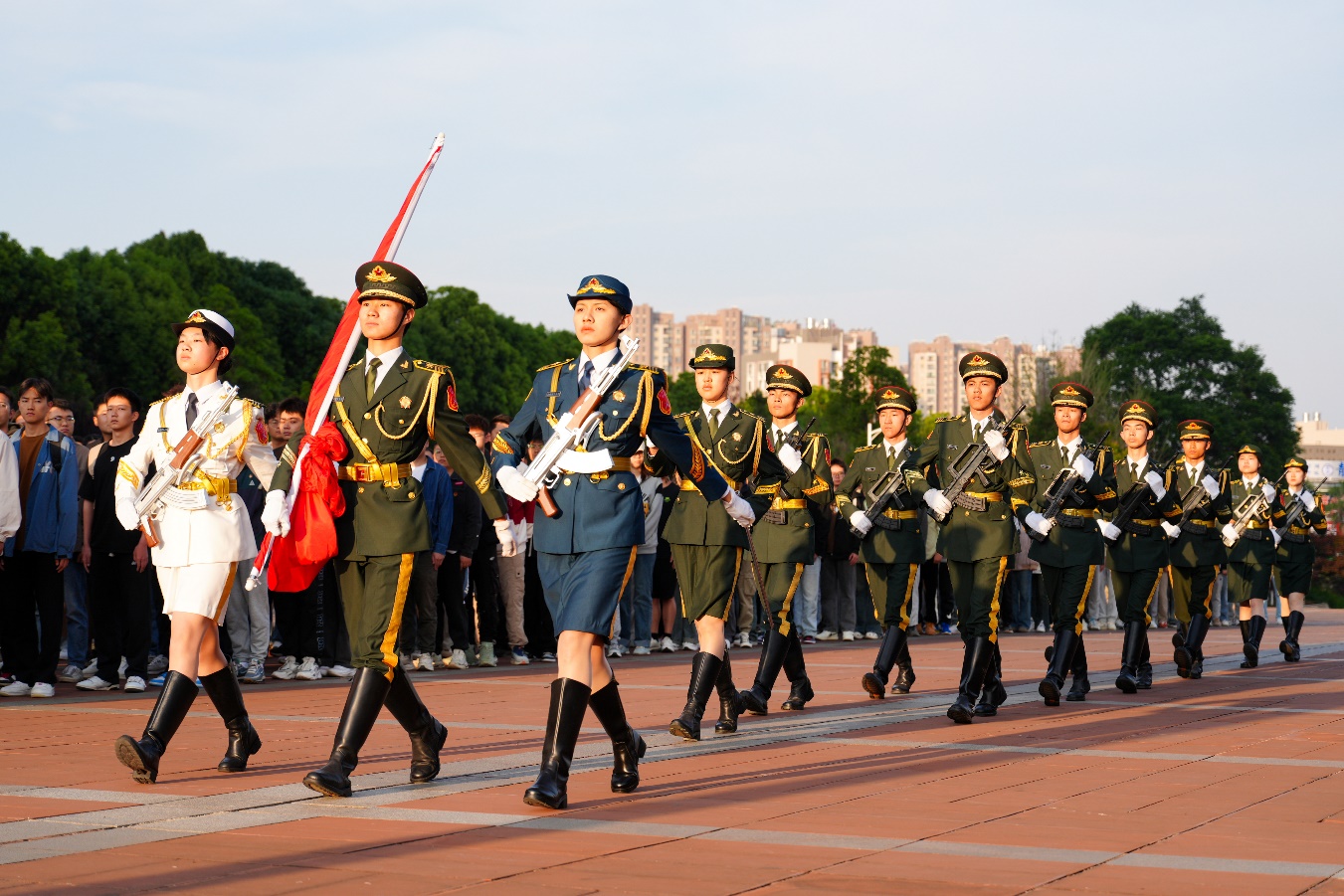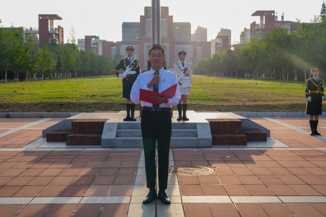 为进一步学习贯彻党的二十大精神,增强无料AV 师生的国家意识,弘扬爱国主义精神,无料AV 于2024年4月22日清晨在呈贡校区国旗台广场举行了庄严隆重的升旗仪式。无料AV 党委书记张强、党委副书记王懿娜及学院师生代表共计500余人参加仪式。 图1仪仗队护卫国旗入场 晨光里,国旗仪仗队昂首阔步,旗手们迈着整齐划一、铿锵有力的步伐护卫着国旗步入旗台。在雄壮激昂的国歌声中,鲜艳的五星红旗冉冉升起,全体师生庄严肃立,齐唱国歌,向国旗行注目礼。 图2升旗仪式 升旗仪式结束后,来自车辆231班的杨洋同学以“青春当奋斗,可为正当时”为主题进行国旗下演讲。他围绕青年学子的责任和担当,鼓励同学们要以习近平总书记致云南大学建校100周年贺信精神为指引,怀抱远大理想,不负青春,不负时代,更要对党和人民有所贡献。他的演讲充满激情,激发了在场每一位同学的热情。 图3杨洋同学发表国旗下演讲 随着他最后一句“让我们一起出发”,在无料AV 合唱团的带领下,全体师生共同唱响校歌《我们从这里出发》,青春激昂的歌声传递着交通学子践行“明德任责、致知力行”校训的决心,彰显了报国之志,他们今后将更努力学习,为交通事业的发展贡献青春力量,成为有担当的中国青年。 图4全体师生共唱校歌