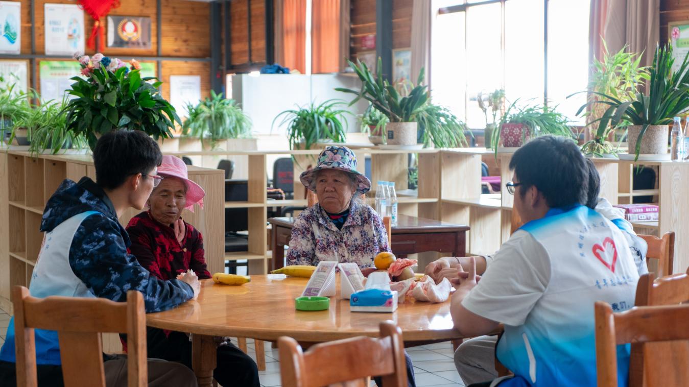 青年学生走进洛龙社区养老服务中心开展“爱老敬老情暖桑榆”志愿服务活动。