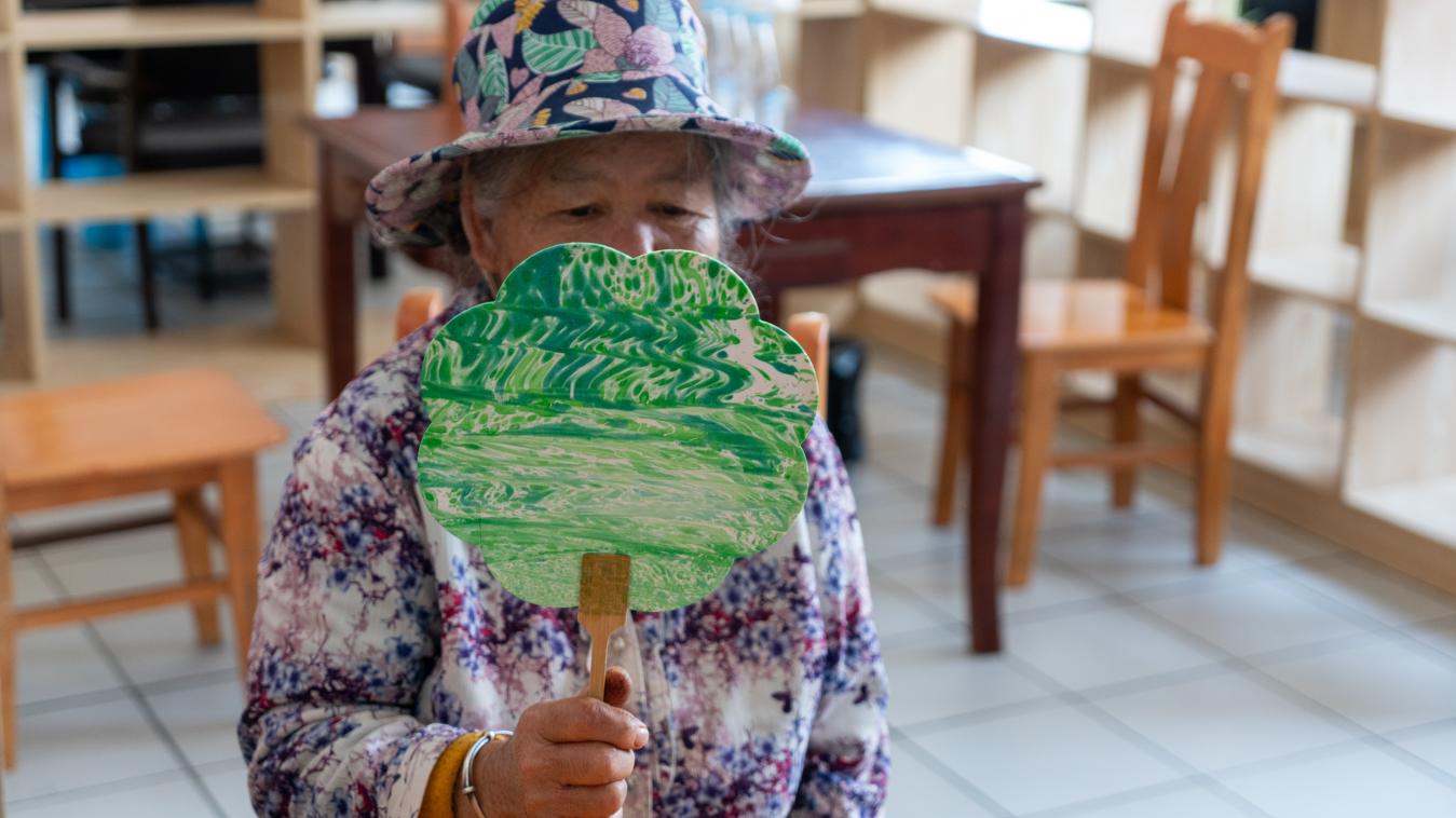 漆扇小组志愿者们教老人们制作漆扇,手把手传授制作技巧,老人们兴致勃勃地参与到制作过程中,共同完成了一幅幅精美的漆扇作品。