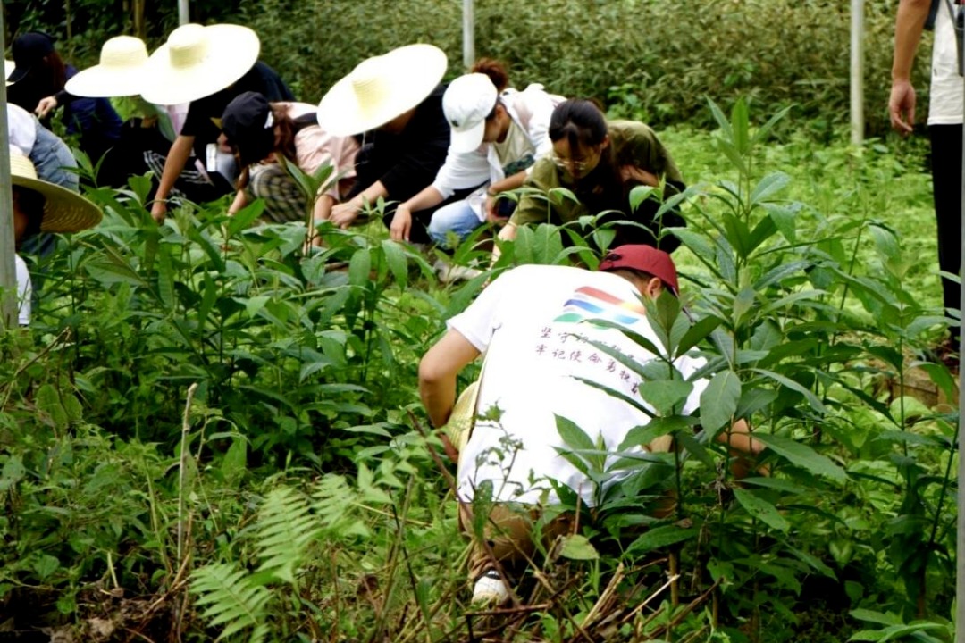 暑期“三下乡”“心系边疆新农村,助力振兴爱永存”乡村振兴实践团共30余人在屏边县特色中药材种苗驯化繁育基地进行实地学习和劳动实践活动。