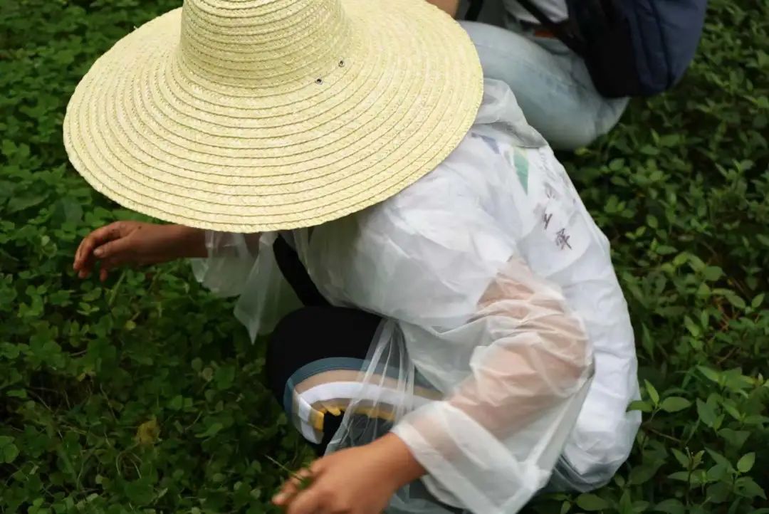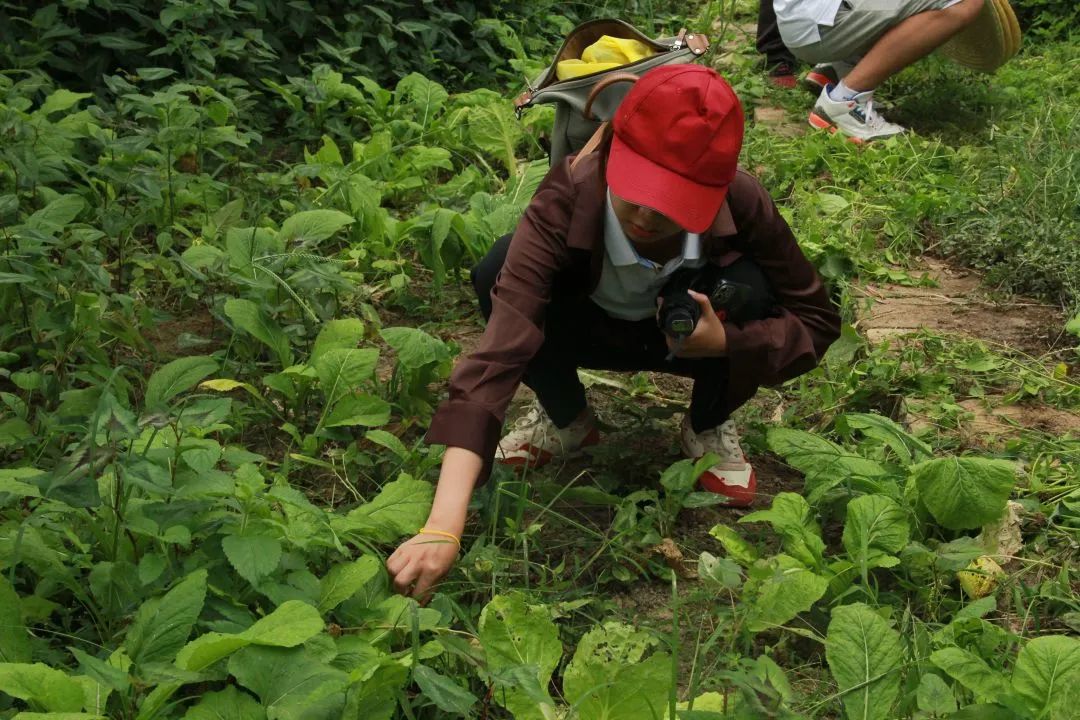 基地管理员向实践队介绍了基地内主要培育的中药材类别、功效等情况,并带领实践队对草药的种植培育工作进行观摩。随后,在管理员的带领下,实践队以小组为单位,在基地内积极劳动——拔除杂草。