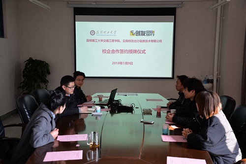 党委张强副书记与云南创友出行信息技术有限公司创始人颜迅签署了人才培养合作协议,学校和企业相互授予“人才培养基地”和“教学实践基地”的牌匾,双方将在人才培养、学科建设、教学实践及技术创新等方面开展深入合作。